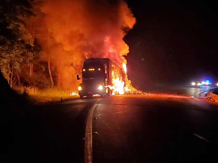 Според нивниот вонреден извештај прекинот е поради настанат пожар на товарно моторно возило.