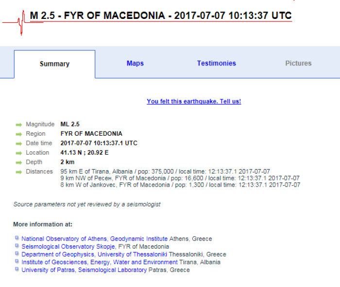 Попладнево точно во 12.13 часот земјотрес со магнитуда од 2, 5 степени го погоди подрачјето на Ресен.