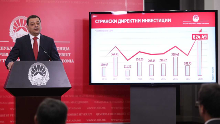Заменик-претседателот на Владата задолжен за економски прашања и за координација со економските ресори, Кочо Анѓушев денеска истакна дека директните странски инвестиции во земјава за 2018 година изнесувале рекордни 624.49 милиони евра, нагласувајќи оти очекува во 2019 година да бидат уште поголеми благодарение на посветеноста на Владата како и на приклучувањето кон НАТО.