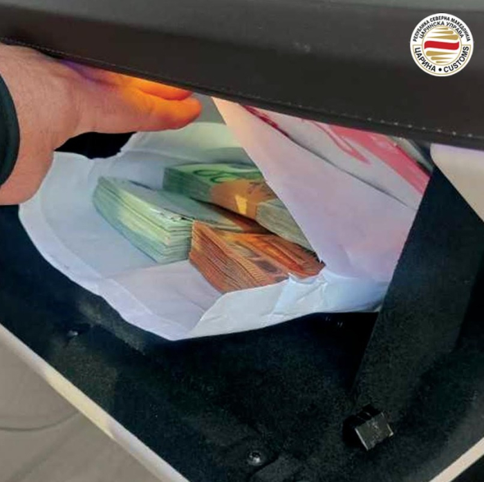 Во вториот случај, во фиоката пред совозачкото седиште на автомобил со македонски регистарски таблички со кој македонски државјанин се пријавил за излез од државата на граничниот премин Блаце, биле пронајдени непријавени 25.500 евра. Согласно законските прописи на патникот му биле вратени 2 илјади евра, износ што резидент може слободно да го изнесе од државата, додека 23.500 евра биле привремено задржани.
