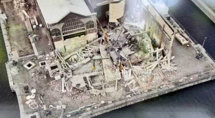 – Кога се качив горе, видов дека едната страна од магацинот е целосно урната, изјави работникот.