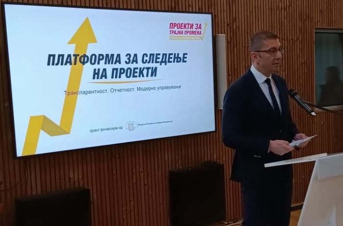 - Оваа Платформа ја симболизира нашата јасна заложба за интегритет, чесност и јавен надзор над сите инвестиции што ги реализираме, без исклучок. За првпат во историјата на Македонија воспоставуваме систем во кој секој граѓанин, секоја општина, секој новинар, секој претставник на граѓанскиот сектор, и секој релевантен чинител ќе може во реално време, транспарентно и прецизно, да го следи текот на проектите што ги финансира Владата, подвлече премиерот пред присутните.