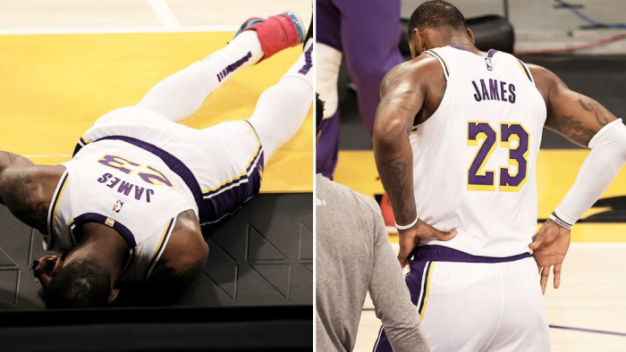 еброн Џејмс си замина од игра во втората четвртина со повреда на скочниот зглоб, по што тимот потврди дека тој е во аут на „неопределено“ време откако Лејкерс загубија со 99:94 на гости кај Атланта хокс.