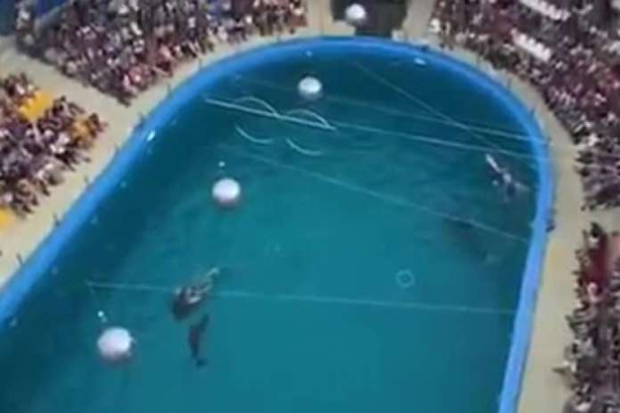 Посетителите на Делфинаруимот во градот Одеса, Украина, беа сведоци на раѓањето на делфинче. На аматерска снимка од публиката, се гледа како луѓето вознемирено го опколуваат базенот, пред да се појават темно-црвени нијанси во водата, проследено со раѓањето на младенчето.