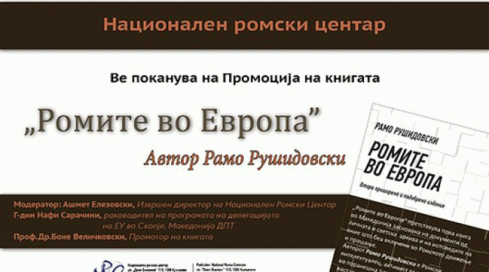 Во ЕУ Инфо центарот во Скопје денеска ќе биде промовирана книгата „Ромите во Европа“ од Рамо Рушидовски.