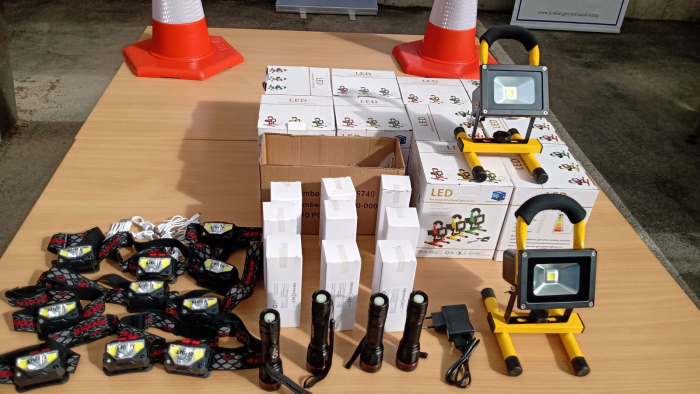 Меѓу донираните средства се агрегатор за струја, канистри за вода, разни светлечки апарати, рефлектори, лаптопи, палки, средства за хигиена и други.