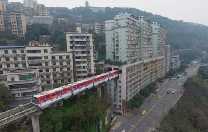 Светско архитектонско чудо: Воз минува низ станбена зграда на огромна височина