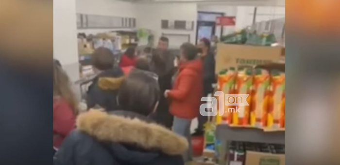 На видеото снимено со телефон кое го објави А1он се гледа како купувачот му се нафрла на вработениот, а неговите колешки се обидуваат да го оттргнат.