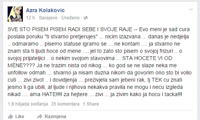 Болната пејачка: Се борам со рак а тие ме навредуваат!