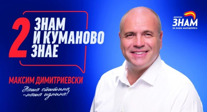Евидентна беше волјата на кумановци на гласањето во првиот круг на избори кои тие ја изразија слободно на избирачките места, а која значи поддршка за мене, порача кандидатот за градоначалник на Куманово и лидер на Движењето ЗНАМ - За наша Македонија, Максим Димитириевски. „Врз основа на резултатите од гласањето за советничките листи и особено на она за кандидатите за градоначалник , повеќе од јасно е дека Куманово оди во насока да продолжам да го водам и во следниот мандат“, ја коментираше Димитриевски разликата во гласови меѓу него и неговиот противкандидат во вториот круг, која е поголема од 10 илјади, се вели во соопштението од Движењето ЗНАМ - За наша Македонија (ЗНАМ), што МИА го објавува интегрално.