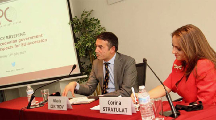 Министерот за надворешна политика Никола Димитров, кој престојува во работна посета на Брисел, денеска во Центарот за европски политики ги претстави реформските приоритети на новата македонска Влада.
