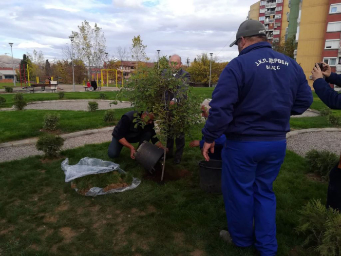 Тие информираат дека уредувањето на паркот кај Комплекс згради „УЗУС“ е согласно Програмата за нови зелени површини на Општина Велес за 2019 година.