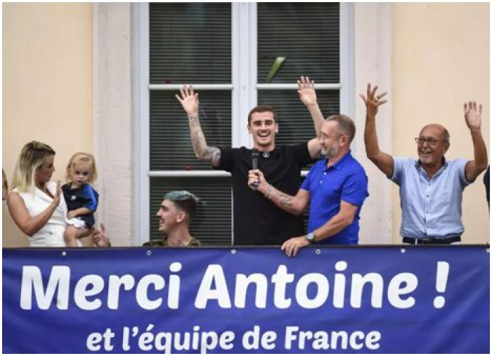 Тој пред своите сограѓани се појавил во петокот, пет дена по триумфот на Франција над Хрватска 4:2 во големото финале. Гризман, беше стрелец на вториот гол за Франција.