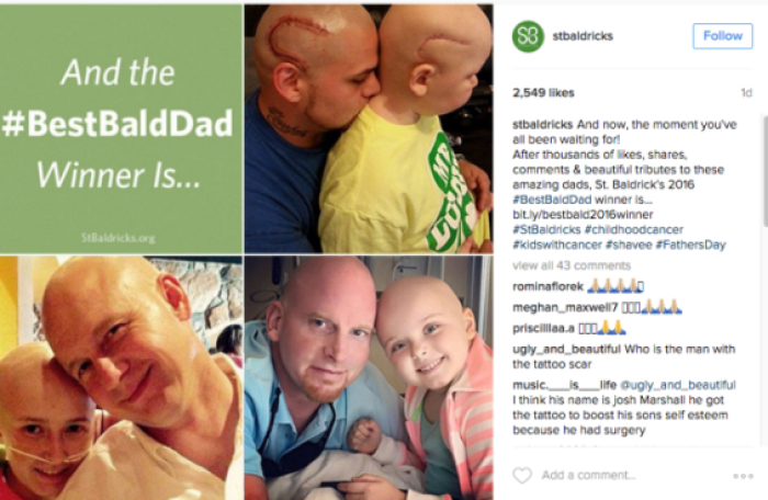 Фотографијата од Џош и Габриел, на која тие позираат со „лузните“ стана вирален хит на социјалните мрежи откако победи на натпревар за „Најдобар ќелав татко“ организиран по повод Денот на таткото. Во натпреварот учествуваат мажи кои си ги избричиле главите за да поддржат дете болно од рак.