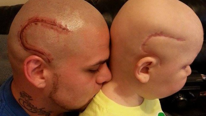 Џош Маршал Канзас, татко на момче кое е оперирано од тумор на мозокот, истетовирал „лузна“ идентична на лузната од операција на неговиот син за да му ја врати изгубената самодоверба.