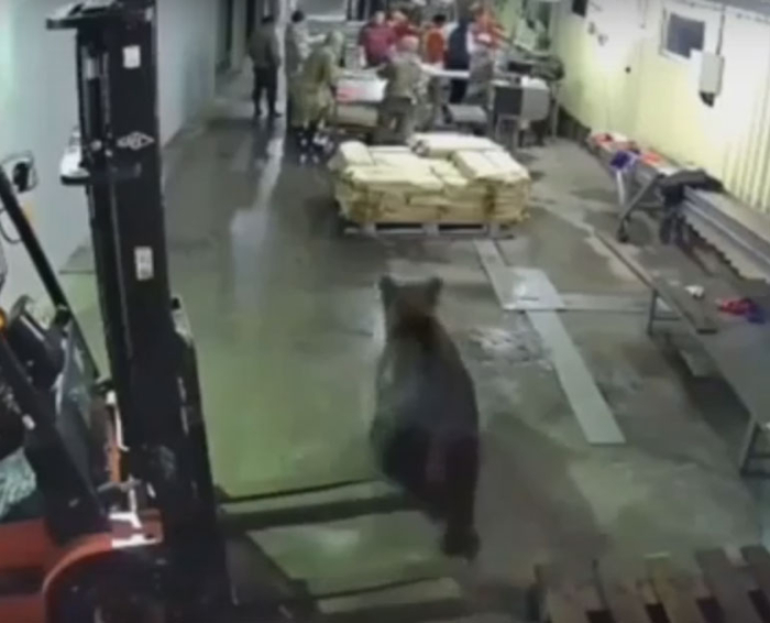 Камерите во магацинот снимиле како мечката влегува во објектот додека се растоварувале рибите. Животното најверојатно било привлечено од миризбата на риби.