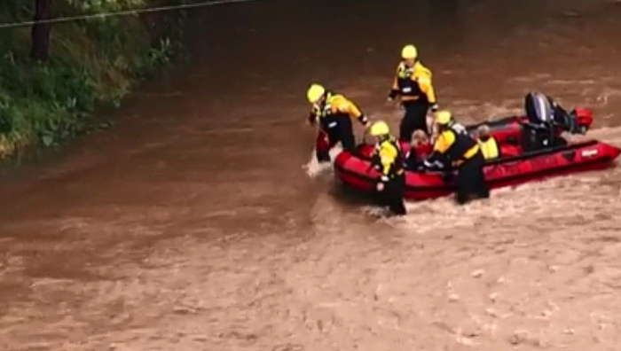 Локалните власти им советуваа на жителите на гратчето Веберс Фолс во Оклахома да ги напуштат своите домови, бидејќи водостојот на реката Арканзас достигна историско високо ниво и се заканува да се излие од коритото.