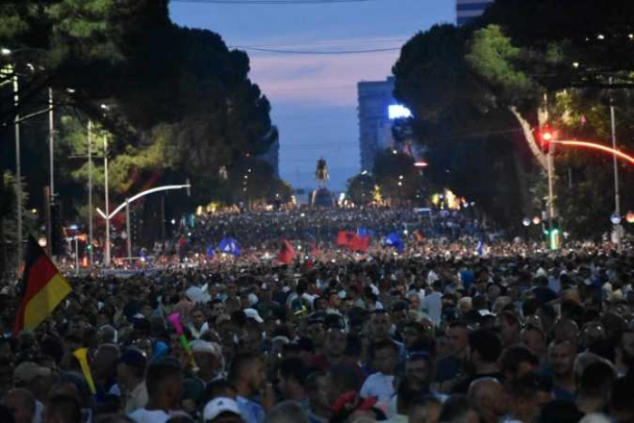 Со обраќањето на лидерот на Демократската партија, Љуљзим Баша, од пред партското седиште, заврши синоќешниот, десетти по ред „национален протест“ на обединетата албанска опозиција, кој е прв по локалните избори на 30 јуни, кои таа ги бојкотираше.