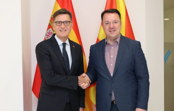 Билатералните односи меѓу Македонија и Шпанија дополнително ги зајакнуваме преку отворање на авиолинијата Скопје-Мадрид и претходно воспоставената линија Скопје-Барселона, истакнале на денешната средба вицепремиерот и министер за транспорт Александар Николоски и амбасадорот на Кралството Шпанија, Рафаел Сориано Ортиз, соопшти Министерството за транспорт.