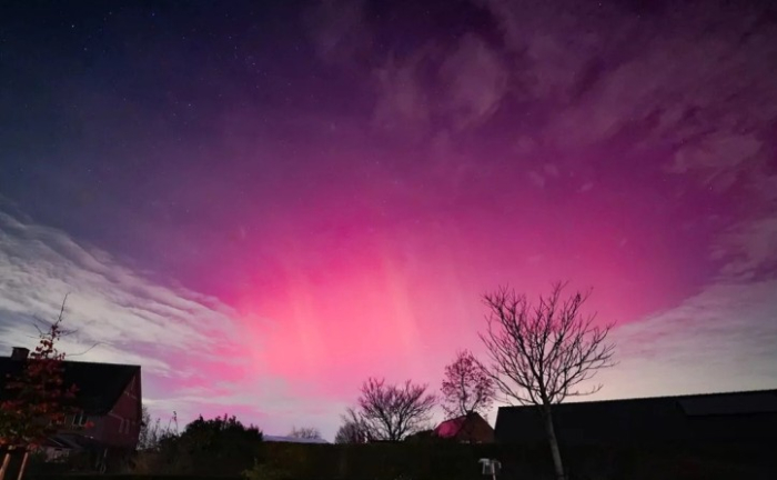 На социјалните мрежи се појавија фотографии на небото прекриено со розова светлина, за разлика од вообичаената зелена боја на Поларната светлина.