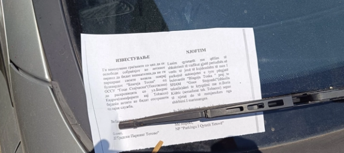 - Презедовме акција автомобилите кои се паркирани паралелно на булеварот „Илинден“ да се отстранат бидејќи го отежнуваат движењето на сообраќајот. Тие можат да се паркираат во училишните дворови, на паркинг места и на затворени паркинзи, појаснуваат од Општина Тетово.