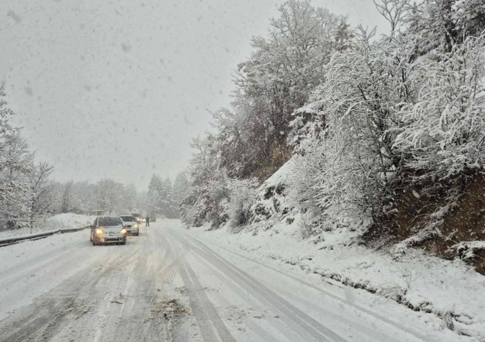 Претходно, од Диспечерскиот информативен центар на Ј.П. Македонијапат, информираа дека забрана за сообраќај за тешки товарни возила, попладнево е воведена на Пресека и на планинскиот превој Буково.
