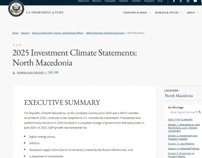 Стејт департмент: Водењето бизнис во Северна Македонија е генерално лесно, главен предизвик е корупцијата