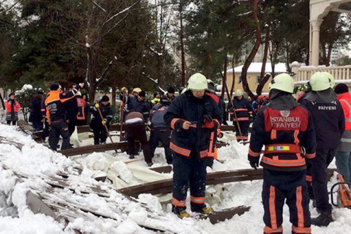 Натстрешницата на џамијата Атакој во квартот Бакаркој, во европскиот дел од Истанбул, се урнала под тежината на снегот што бил паднат на неа.