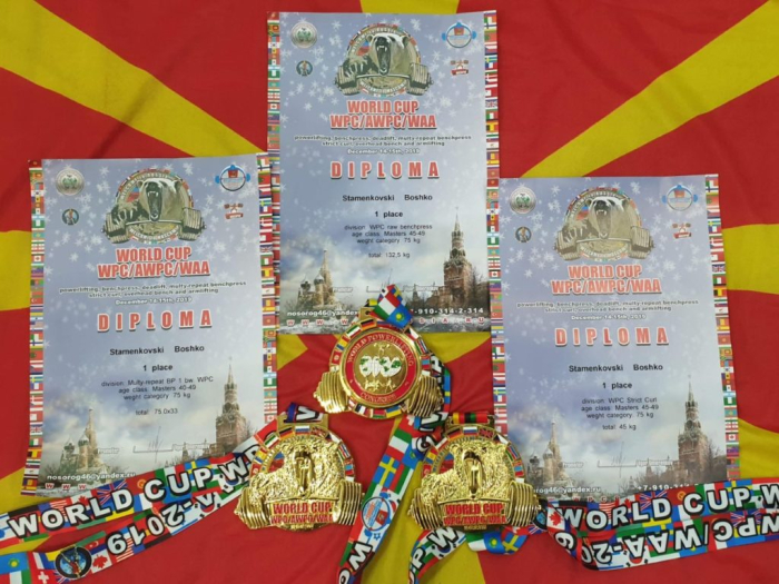 Бошко Стаменковски со три златни медали се враќа од главниот град на Русија, Москва каде изминатиот викенд учествуваше на Светскиот куп во Бенч прес, на кој беше единствениот македонски претставник.