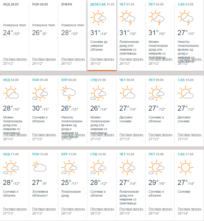 Утринската температура до 12, а дневната ќе достигне до 30 степени.